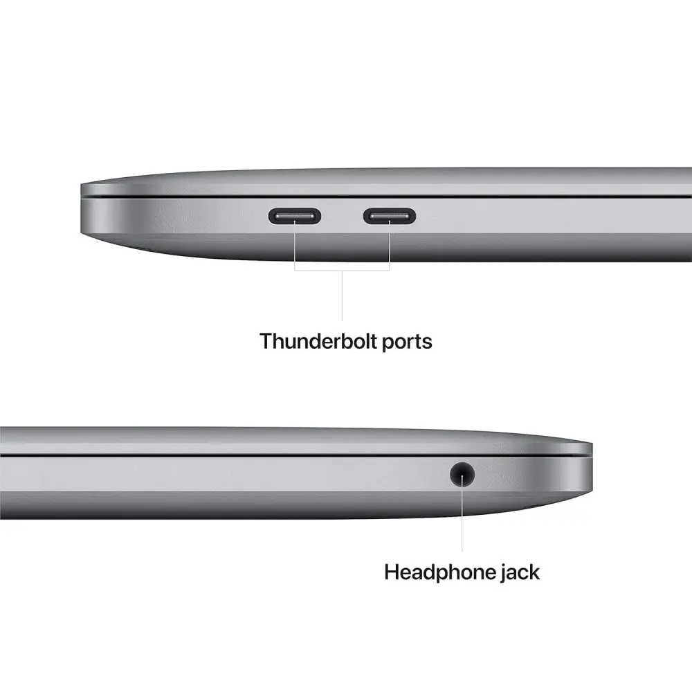 Connectivity includes two Thunderbolt / USB 4 ports supporting charging, high-speed data transfer, and external displays, plus a 3.5mm headphone jack. Enjoy immersive stereo speakers with high dynamic range, Wi-Fi 6, and Bluetooth 5.0.