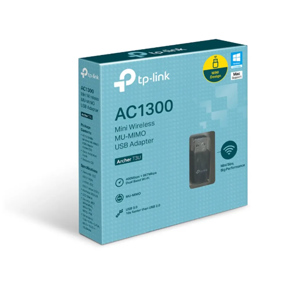 Archer T3U AC1300 Mini Wireless USB Adapter upgrades your laptop or desktop